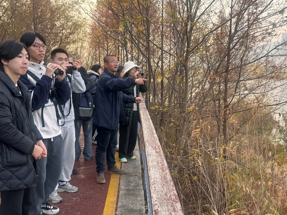 12月18日,学院紧扣《野生动植物保护与管理》课程核心要求,开展“邂逅飞羽精灵——青山湖国家森林公园里的观鸟课堂”教学实践活动。活动特邀青山湖国家森林公园管理局资源保护科王卫国科长带队指导,生态学专业23级50余名师生参加此次活动。